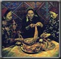| Secondi Kuyrdak Basturma. Tostik (la punta di petto). Manty. Manty con carne e zucca. Zhuta. Kuyrdak di carne. Il pesce siberiano, gli gnocchi. Siberiana carne gnocchi Beldeme (la sella d'agnello). Torte del pesce. Sazan imbottito. Sazan fritto (la carpa). Zhauryn baglana imbottito (la spalla di pecora). Castrato stufato. Kuyrdak made di trippa. Lagman. Sozba lagman - lagman made di pasta tesa. Kuyrdak di coniglio dell'or del pollo. Plov nello stile di kazakh. |